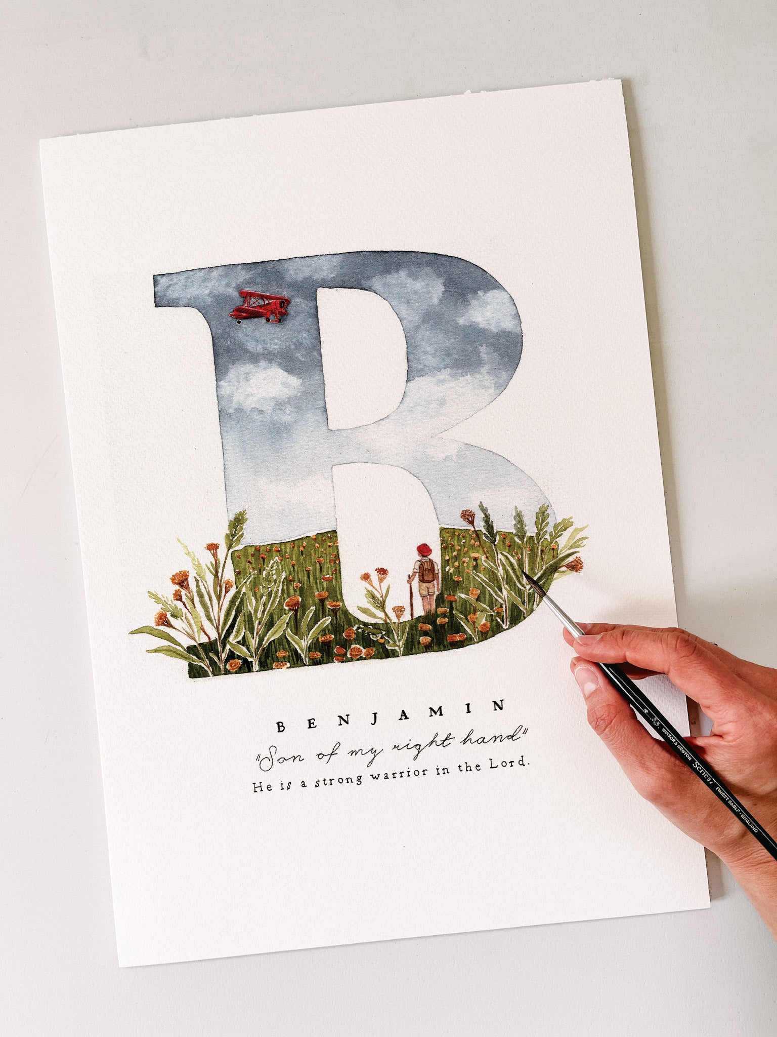 - Each name, meaning and verse is lettered by hand, scanned and joined to the artwork