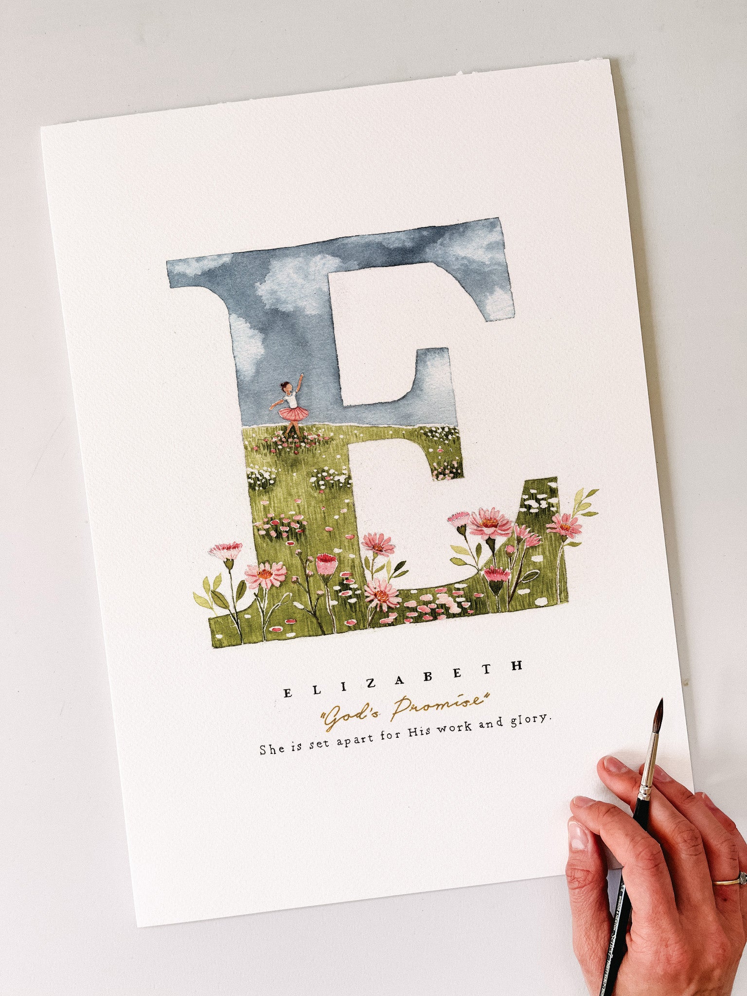- Each name, meaning and verse is lettered by hand, scanned and joined to the artwork