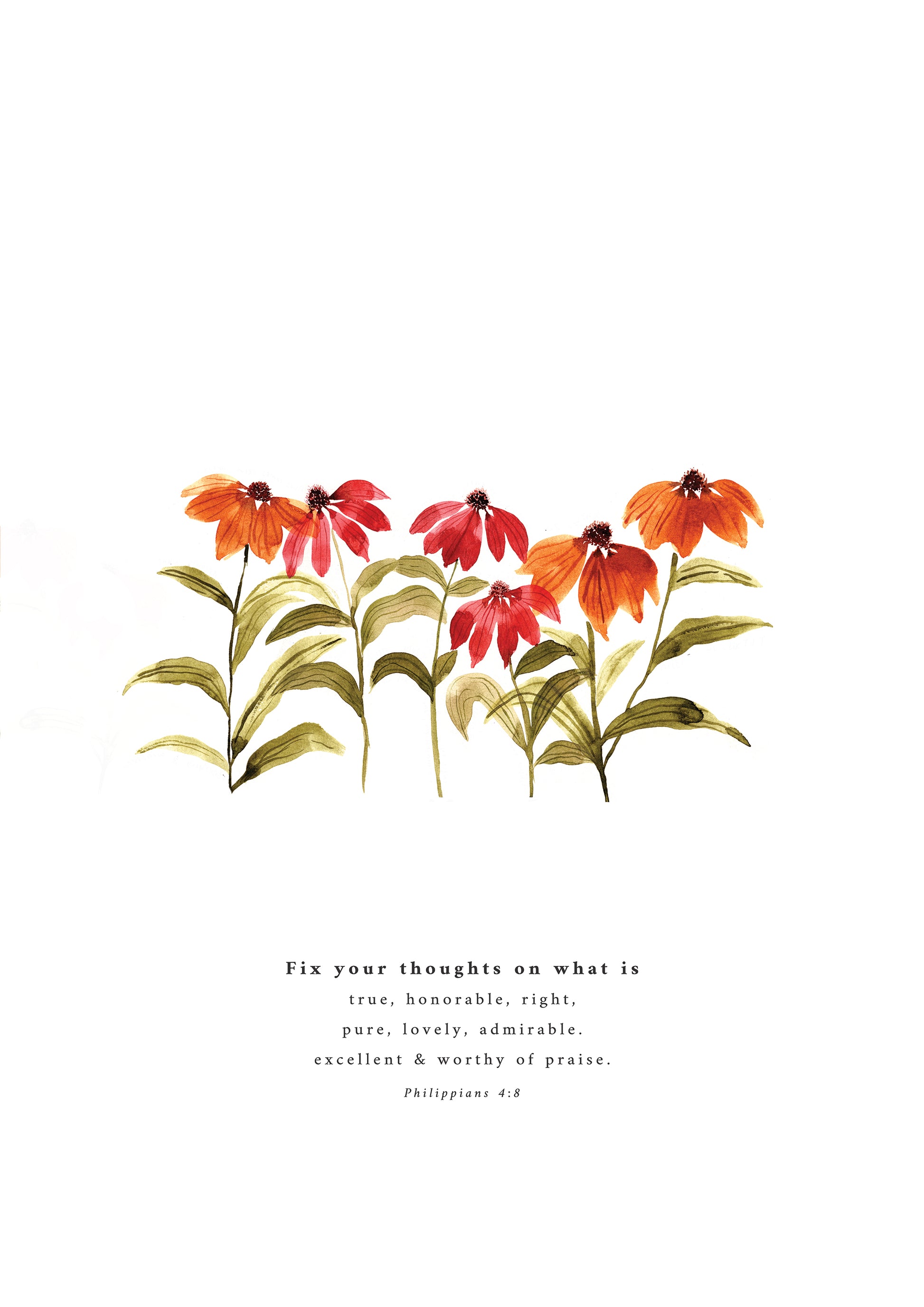 And now, dear brothers and sisters, one final thing. Fix your thoughts on what is true, and honourable, and right, and pure, and lovely, and admirable. Think about things that are excellent and worthy of praise. Philippians 4:8