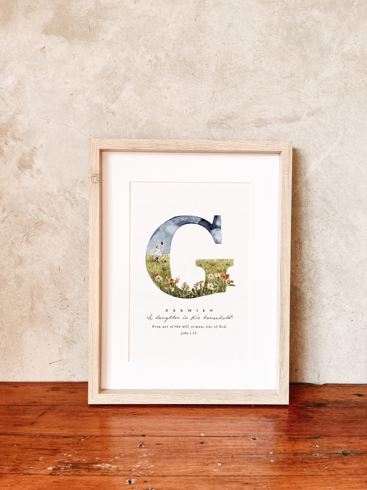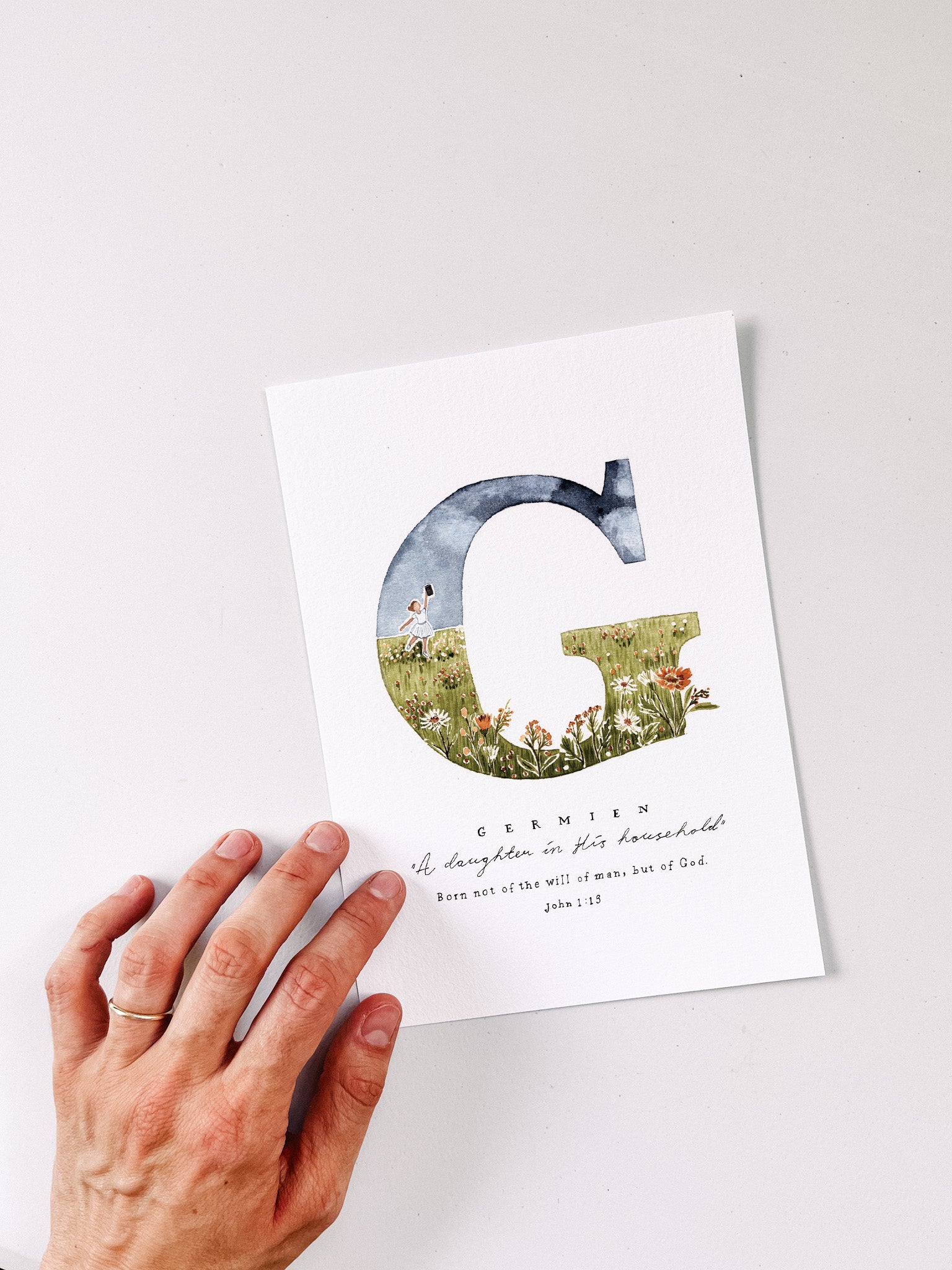 - Each name, meaning and verse is lettered by hand, scanned and joined to the artwork