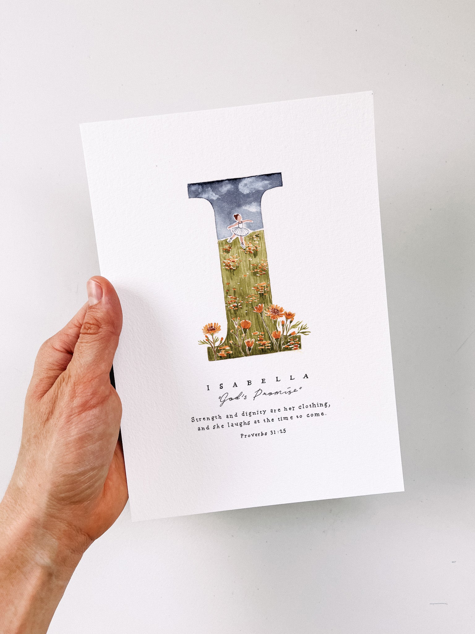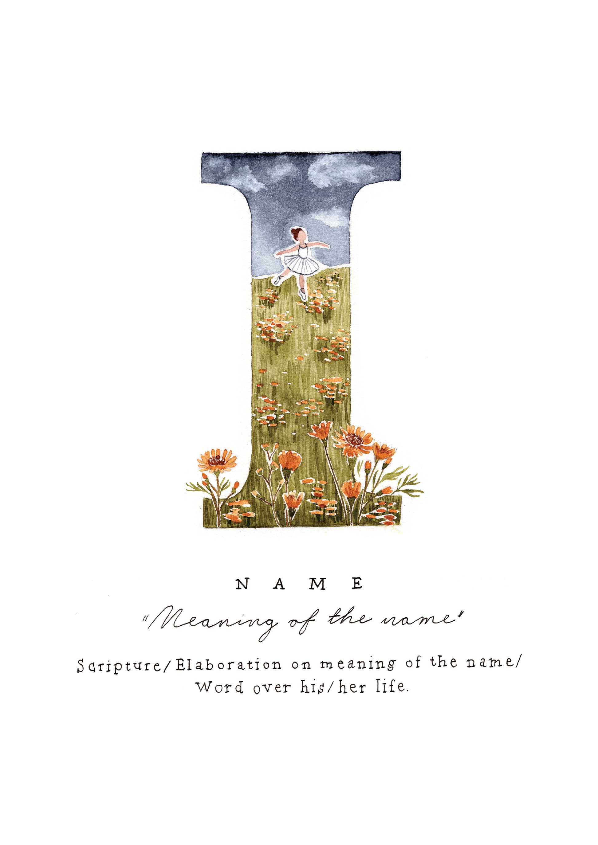 - Each name, meaning and verse is lettered by hand, scanned and joined to the artwork