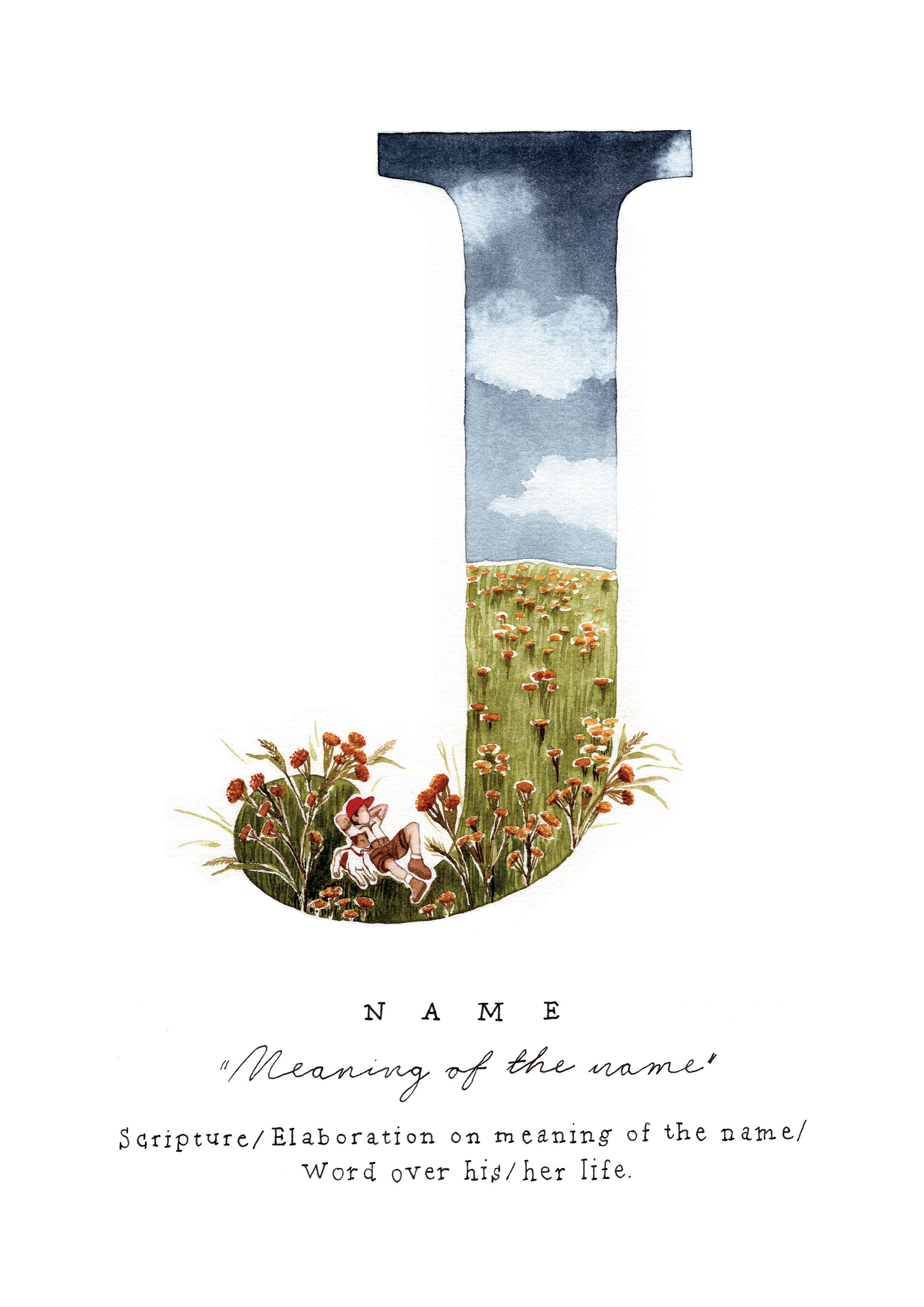 - Each name, meaning and verse is lettered by hand, scanned and joined to the artwork