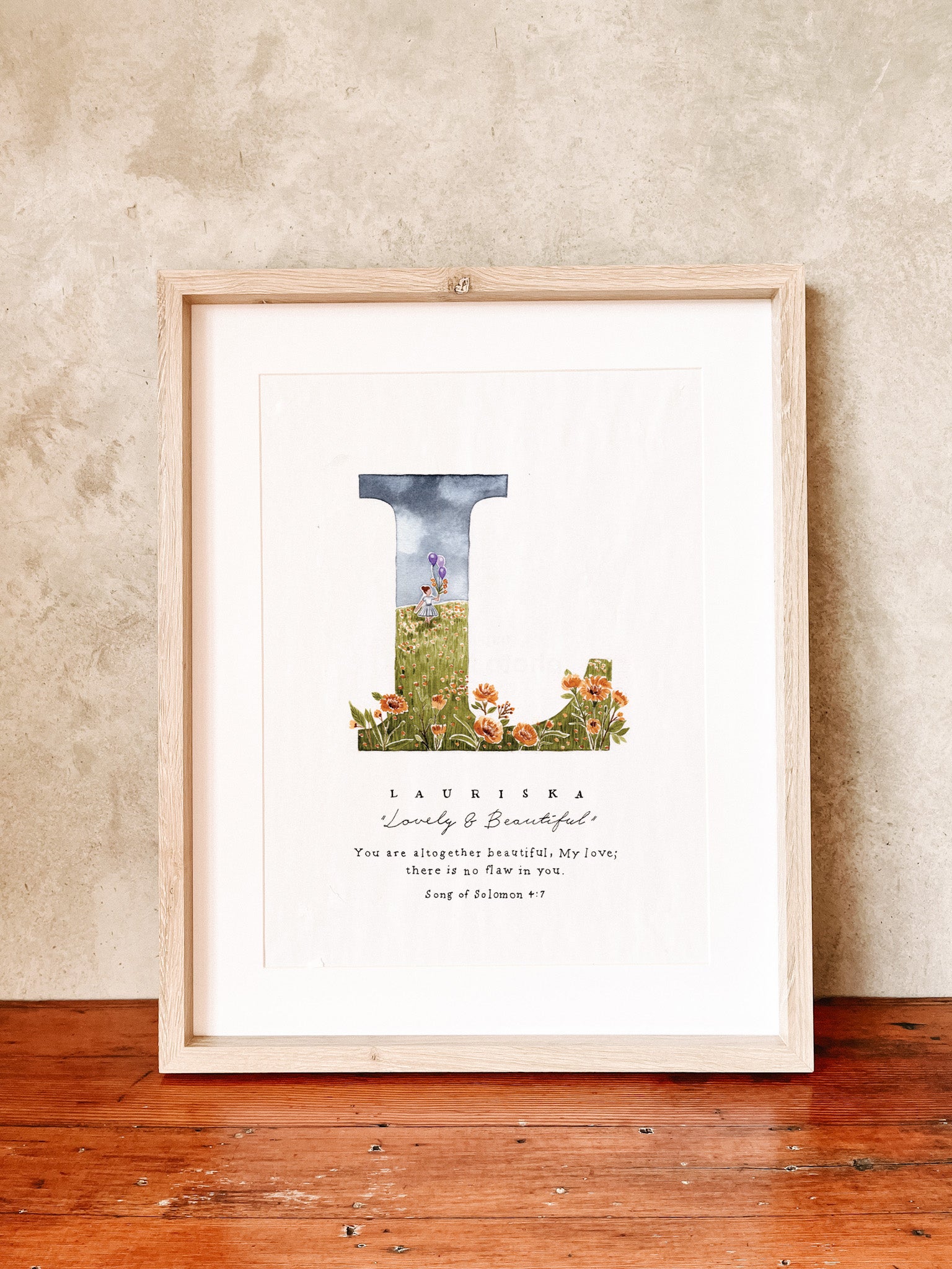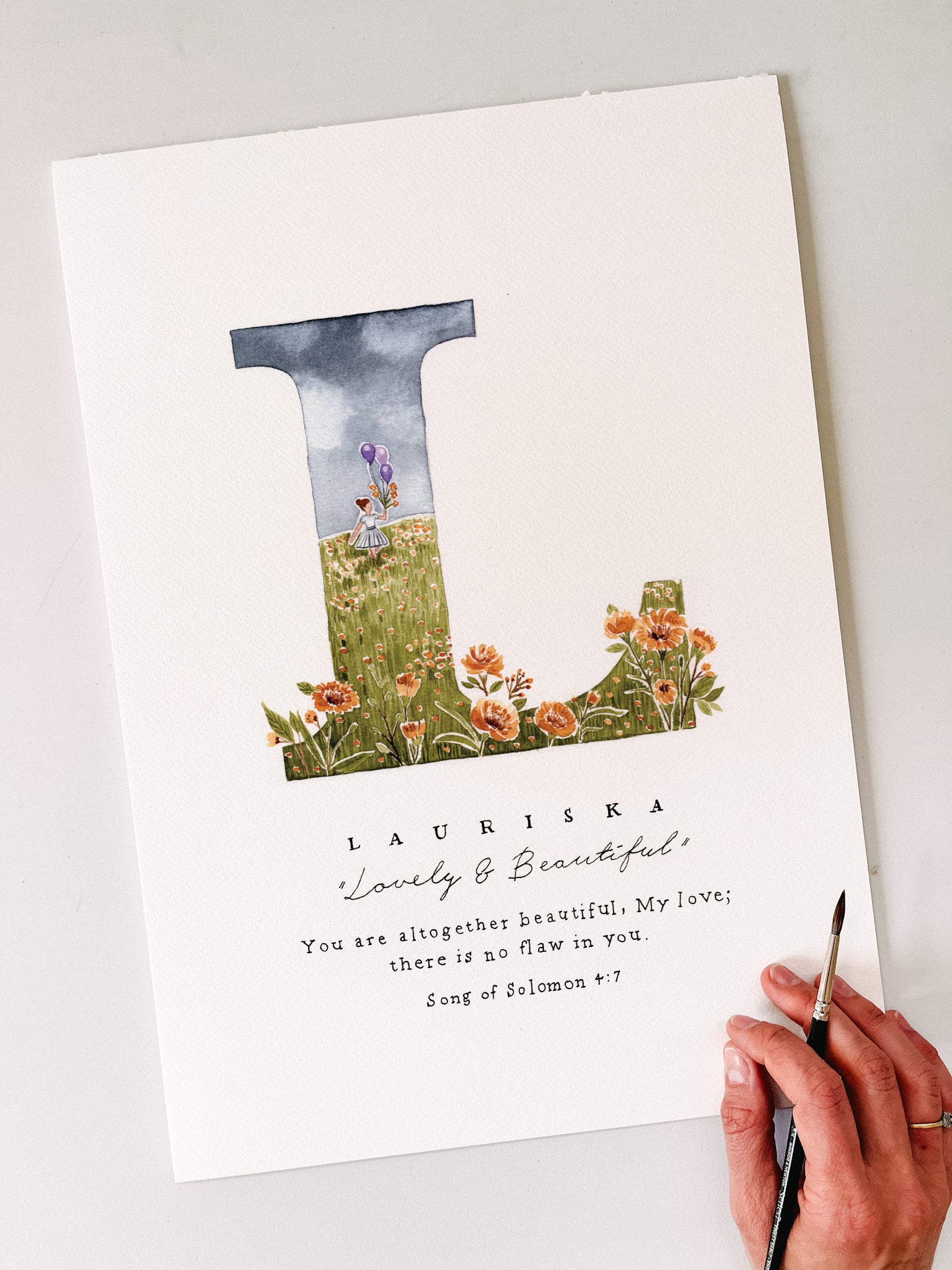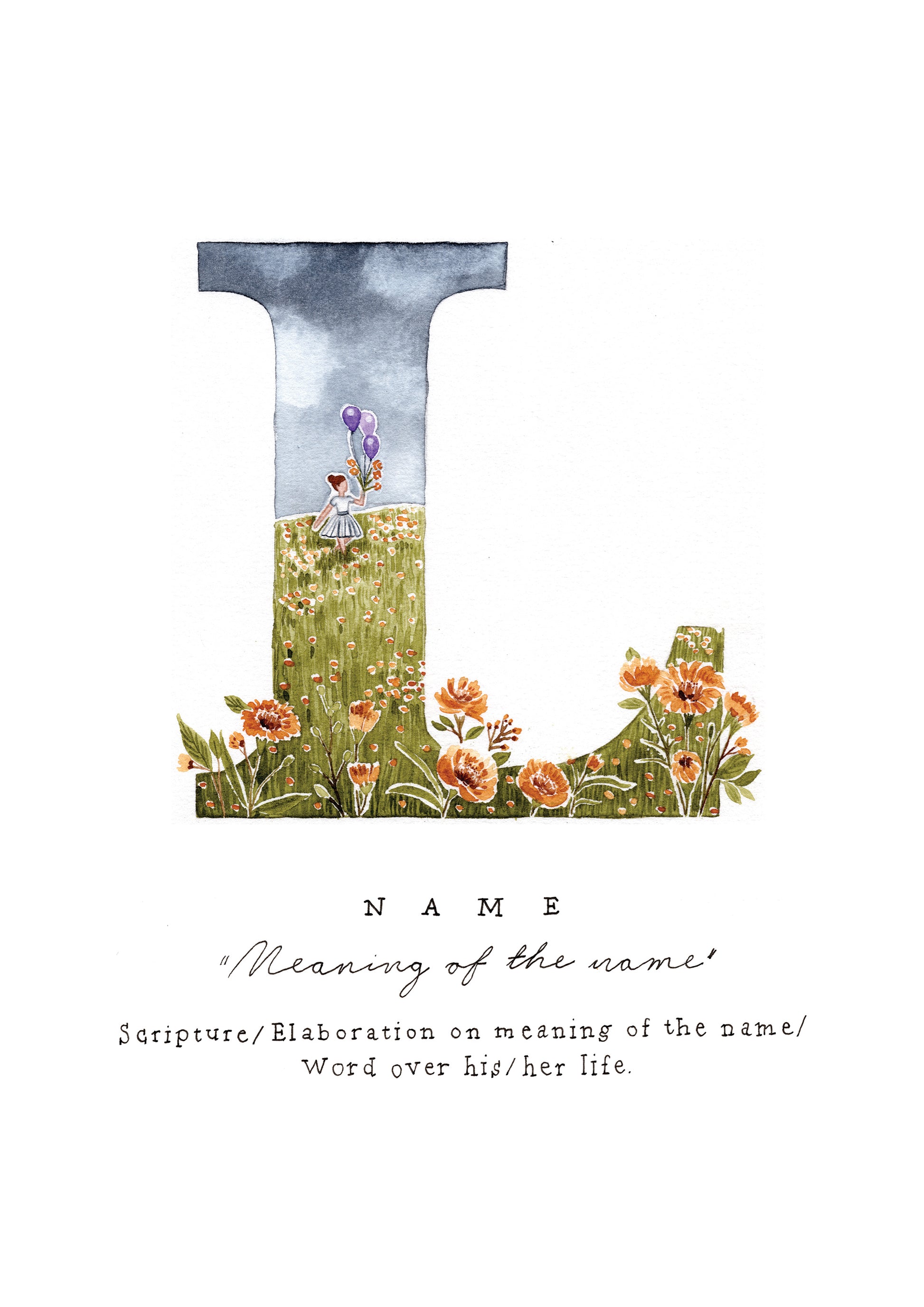 - Each name, meaning and verse is lettered by hand, scanned and joined to the artwork
